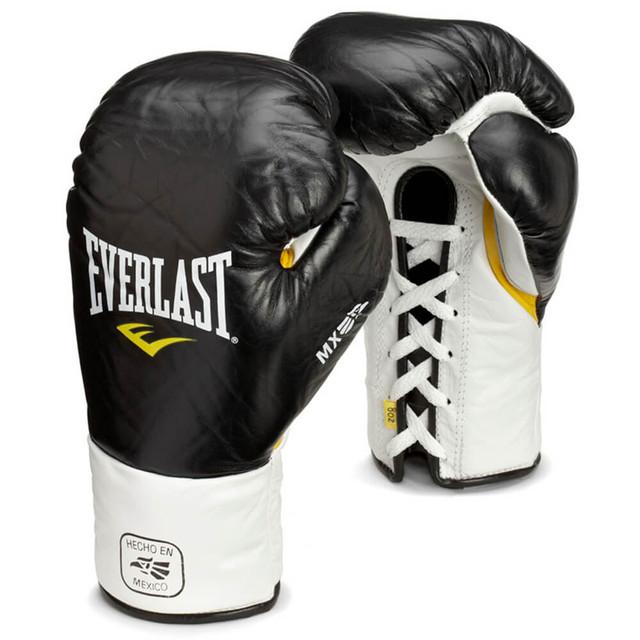 The Everlast MX Pro Fight Gloves are the go-to glove for professional fighters across the world. Combining premium Mexican leather and custom horsehair, these are Everlast's best gloves to date. The premium Mexican leather maximizes flexibility and wrist comfort. The custom horsehair and foam blend allows for optimal power transfer. Carefully handcrafted in Mexico for superior quality.