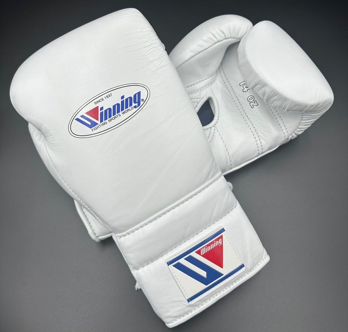 - Winning® Professional Boxing Gloves, 12oz, 14oz and 16oz Lace-up Design White.